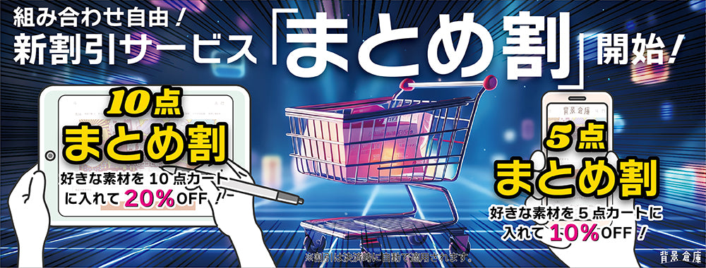 お好きな商品どれでも5点で10%OFF、10点で20%OFFの大特価!「学校を3点+自然物を2点」など、ジャンルをまたいだ組み合わせも自由!割引は決済時に自動で適用されます。