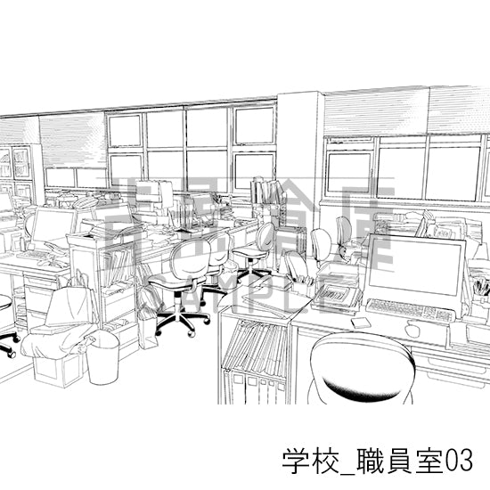 背景 背景倉庫 haikeisouko 漫画背景 背景素材 トーン tone 学校 職員室 school staff_room